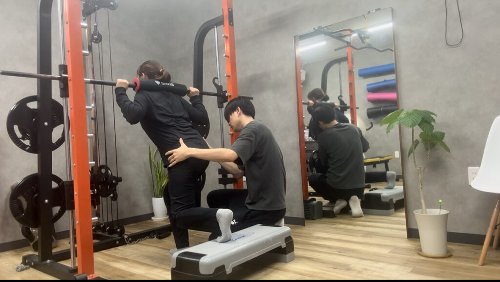 柔道整復師などの国家資格を持つスタッフが、身体の構造を理解したうえで指導を行うため、ケガや持病がある方でも安全に取り組めます。トレーニング前には必ずコンディションを確認し、痛みの原因や動きのクセを修正。健康と美容を両立させながら、根本から体を整えていきます。