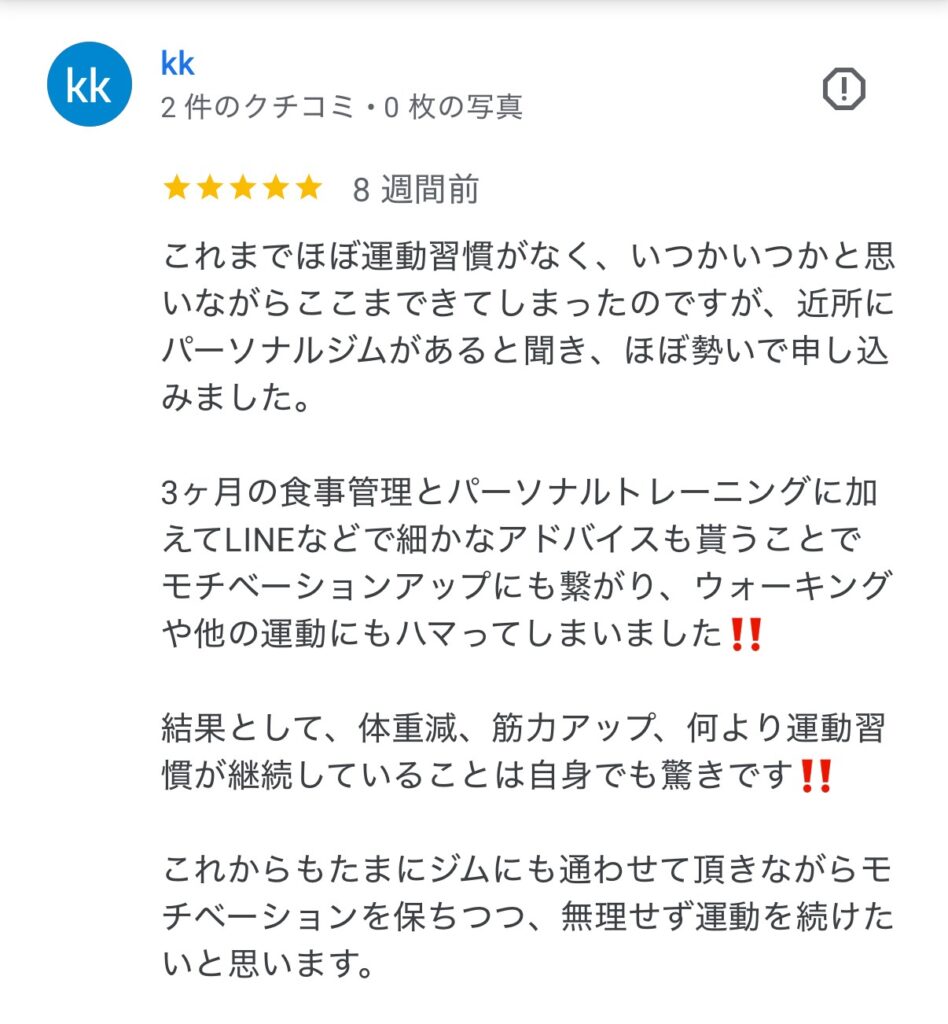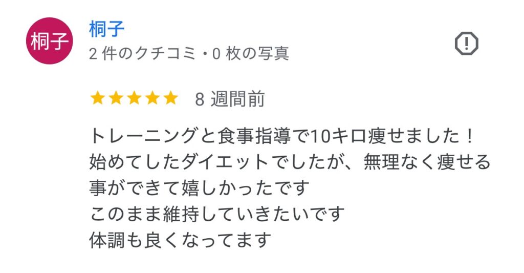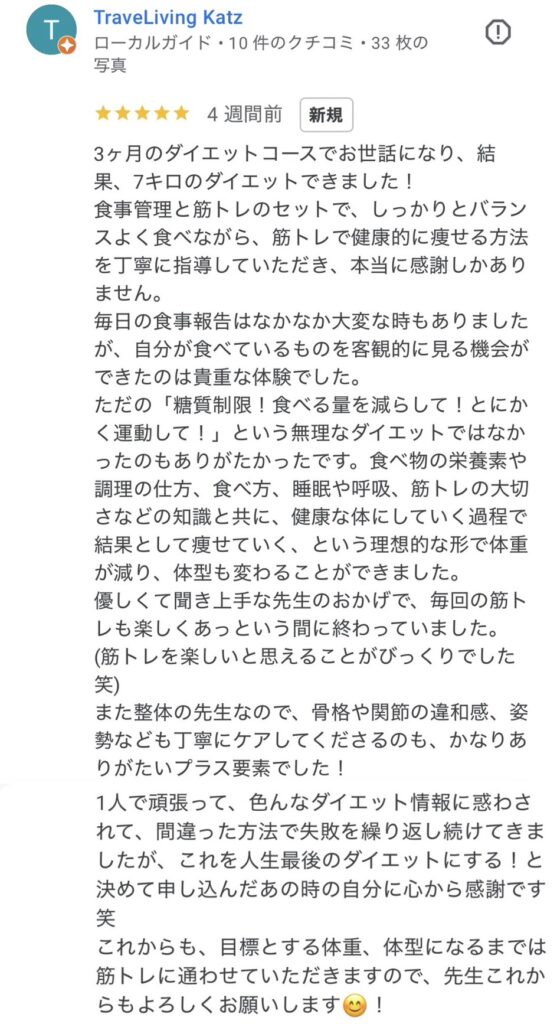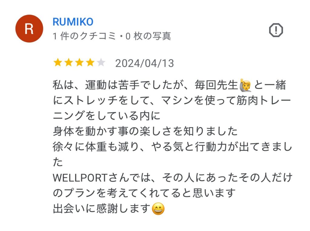 ここは無理な運動がなく、体の状態を見ながら進めてくれるので安心でした。